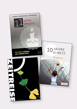 Dort finden Sie eine Auswahl an Referenzen: Plakate als Hingucker, Flyer und Karten für viele Anlässe, Logos als das Aushängeschild Ihres Unternehmens